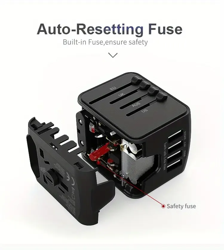 Equipped with 3 Type-C ports, 1 USB A port, plus Ghana-friendly universal plug pins used across multiple countries, it’s like having a thoughtful electricity manager. Whether you’re topping up your phone and wireless earbuds before heading out in the morning, or letting your tablet, power bank, and desk lamp share power when you get home at night, four devices can charge steadily at once. No more squabbling over sockets!