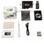 Accessories include a user manual, USB data cable, 32GB TF card, card reader, lithium battery, and camera strap.